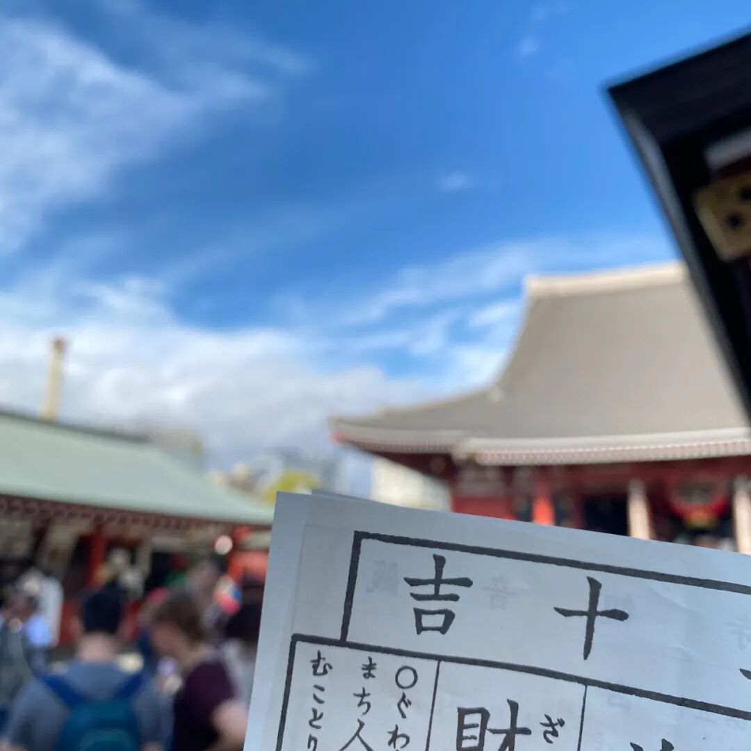 月初在东京浅草寺,摇了一张吉笺,风太大被刮上天,以为好运要飞走,结果又落回地面被好朋友捡回来,仔细一看,发现上面写着会「失而复得」。