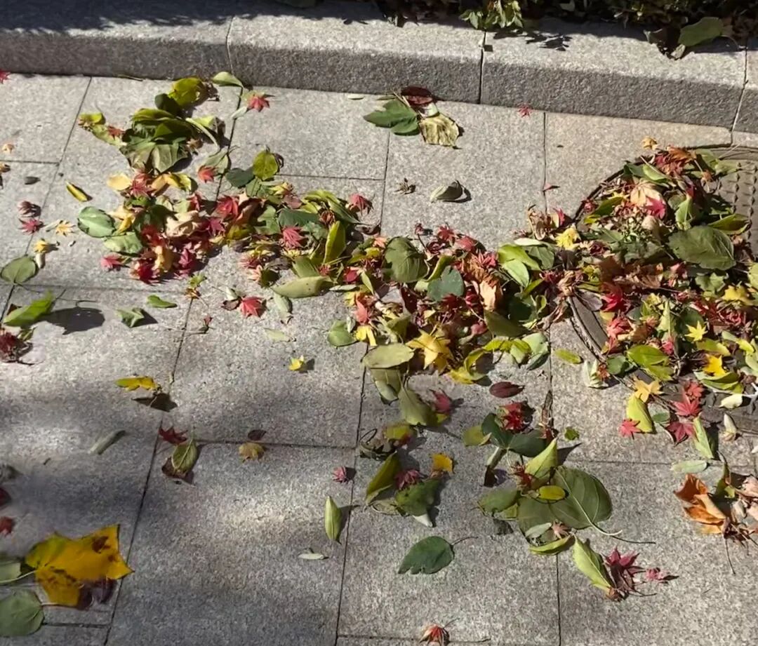 公司园区里有好多种树,有天在去食堂的路上看到地上的落叶,被风卷起滚做一堆,真的很像一盘大自然色拉,也有可能是因为我饿了。