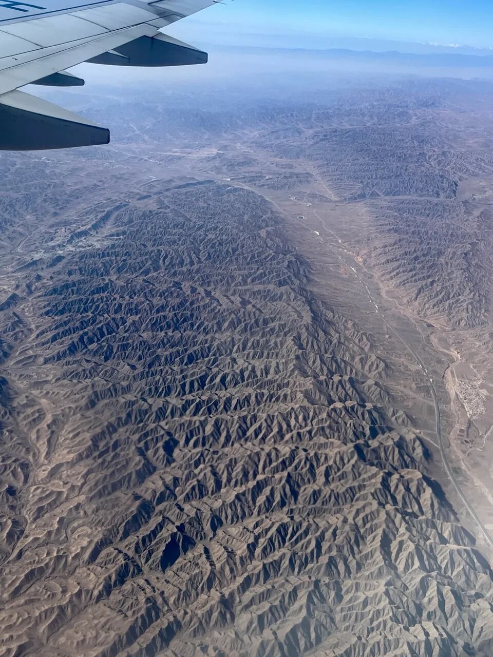 飞兰州的时候,从高空俯视黄土高原,沟壑纵横;作为地理专业的学生,第一次真真切切认识一种地貌特征,非常非常震撼!