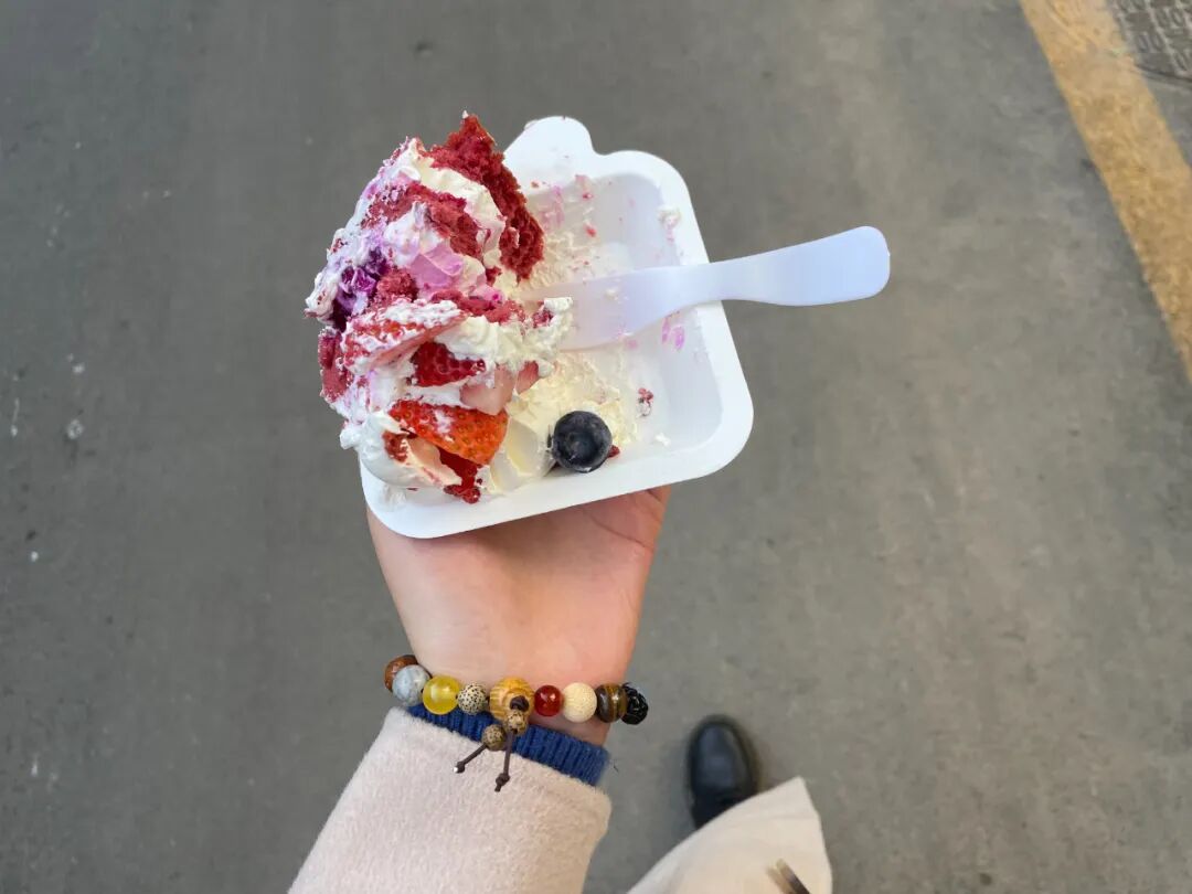 和朋友顶着寒风逃出学校,吃一顿属于秋天的舒芙蕾。