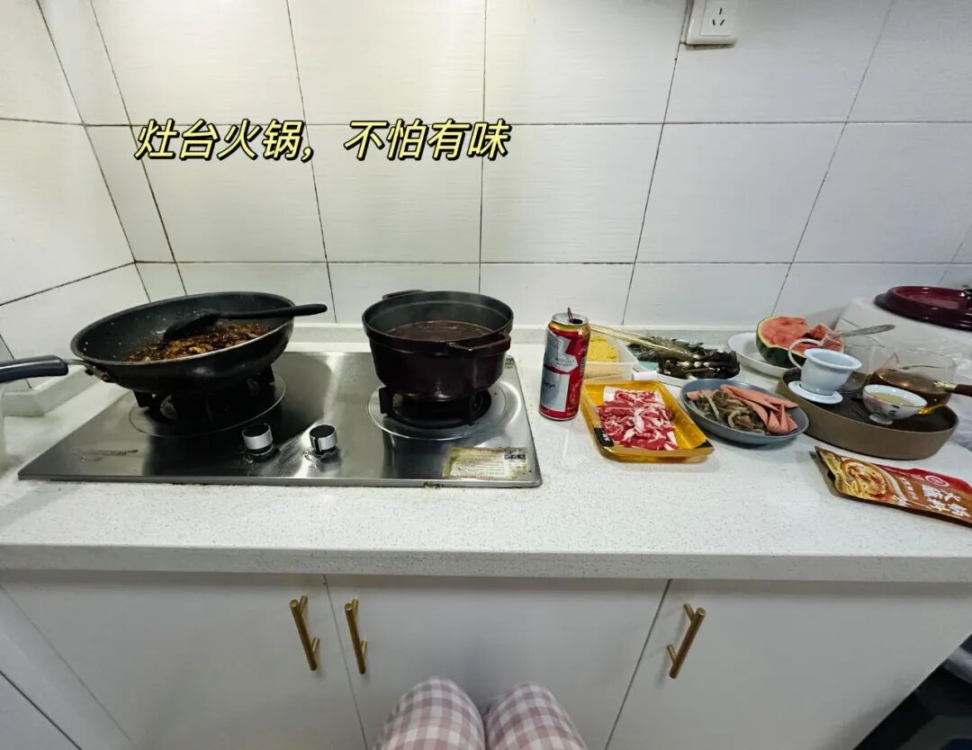 连续高强度工作好多天,周日总算空闲下来,坐在厨房灶台前来了顿火锅,做了成功的冷吃鸡翅,泡一壶茶,还配了个西瓜,一个人享受得不行。