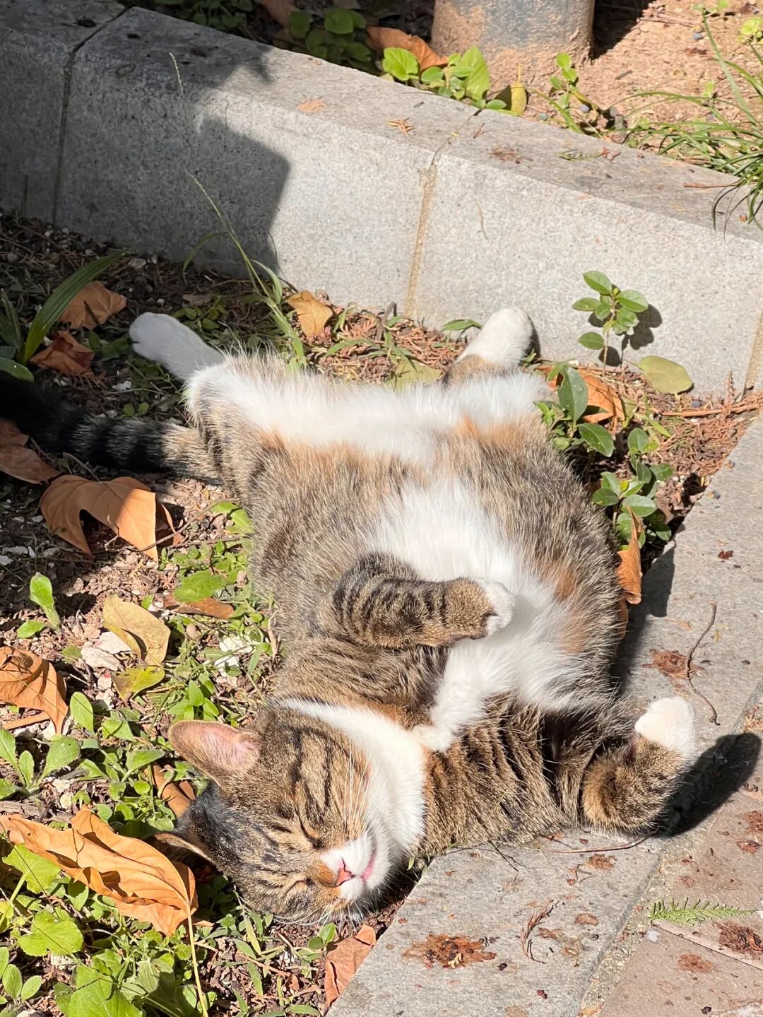 很忙碌的一天,但看到学校的咪宝懒洋洋地晒太阳睡大觉,真的好舒服呀!