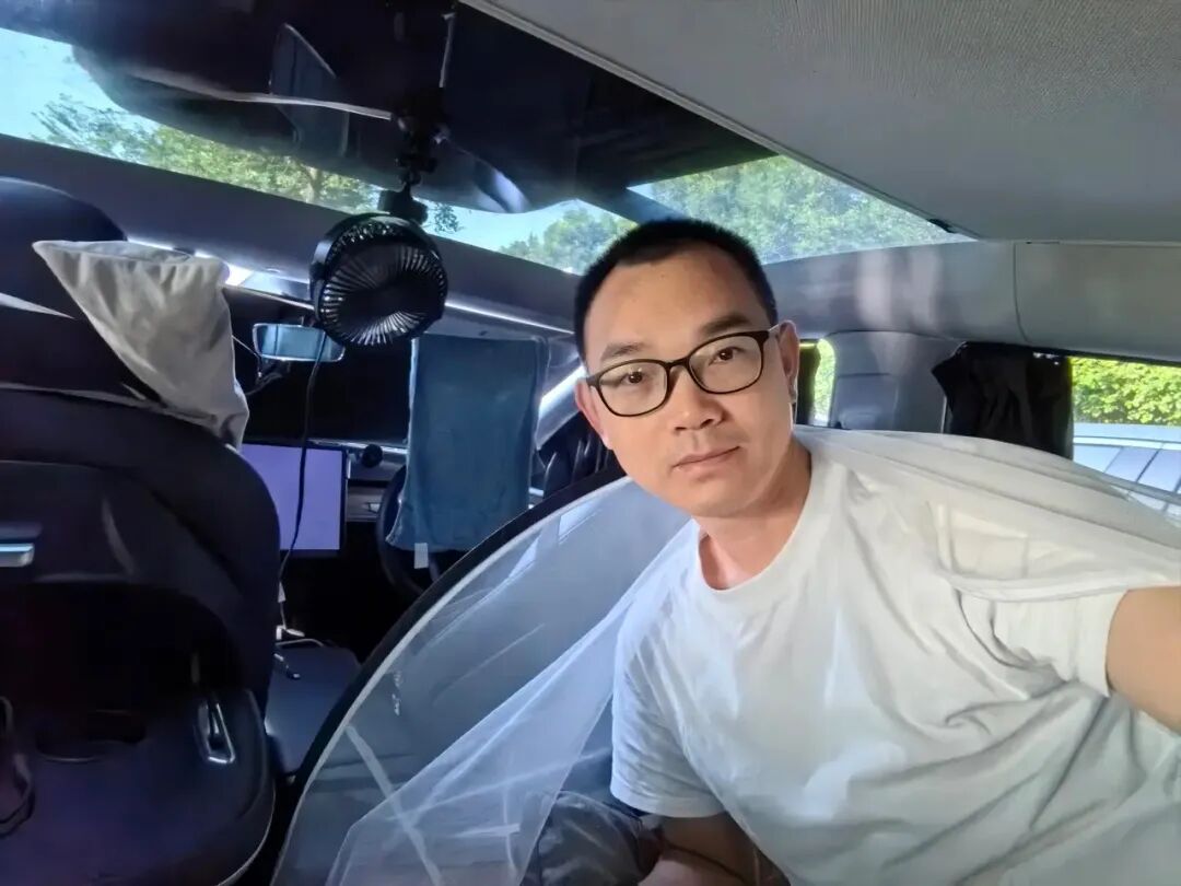 最初我没想过住在车上的,刚好有一次去特斯拉展厅,看到车的后排座椅放了一张床垫,当时就非常打动我,这种床车模式,让当时还住在出租房的我感觉很亲切。真的很好,相当于你有了一个移动的空调房。