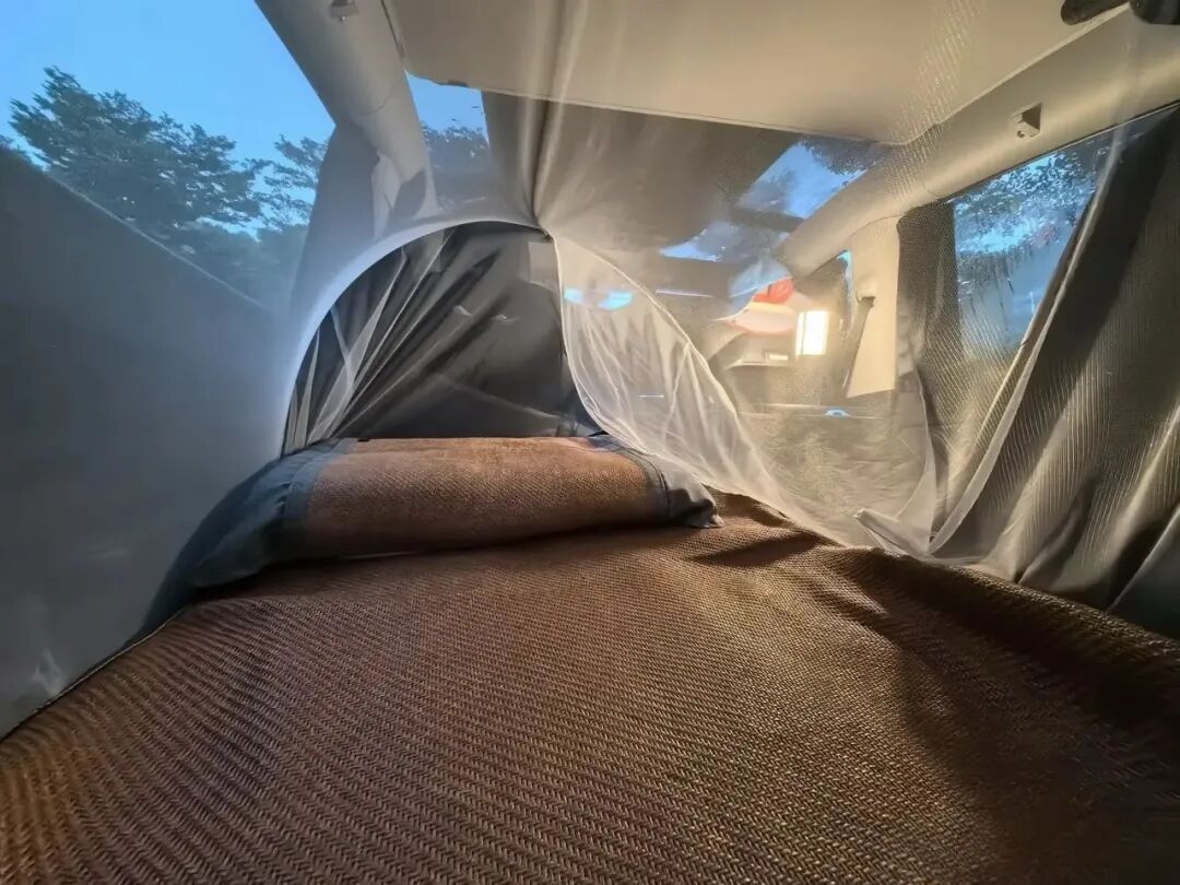 也有些问题不那么好解决。住在车里,蚊子就是个大问题。有人说可以装纱窗。但其实我这几年实验下来,纱窗有时候不管用。因为你去到那里停车,你总会打开车门,那一瞬间可能蚊子就飞进来了。一开始被蚊子咬得很烦,买了蚊帐之后就没有这样的问题了。