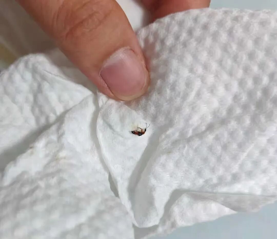 在被毒隐翅虫弄伤之后,这个夏天,阿树在家里也陆续发现了不少毒隐翅虫,尤其是梅雨季,气候非常潮湿闷热。这也是它令人最无可奈何的一点。「它小到都能从纱窗钻进来,很难彻底防住。我在家里的墙角、柜子里都看到过,有的时候一天能发现三四只,有一次我去拿菜,还看到一只毒隐翅虫在菜叶子上面爬;还有一次是在我养的猫的水碗里,看到一只淹死的毒隐翅虫。」