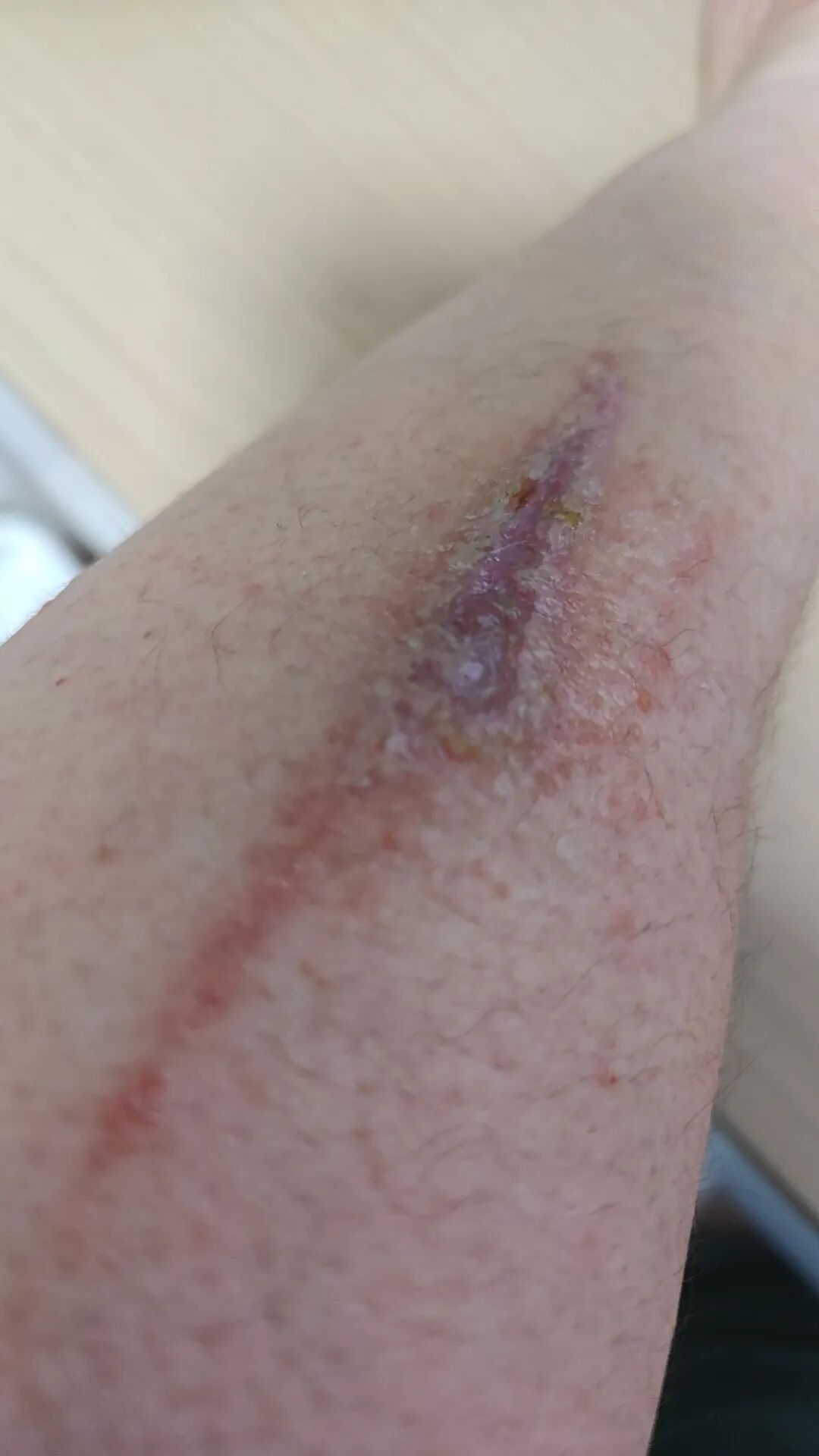 在武汉,苏东手臂上不断加剧的痛感也在提醒他,这好像并不是刮伤那么简单。尽管从形状看上去,这个长条形的伤口很像是一块皮被刮掉了,但伤口旁边开始长出了十多个小水泡。