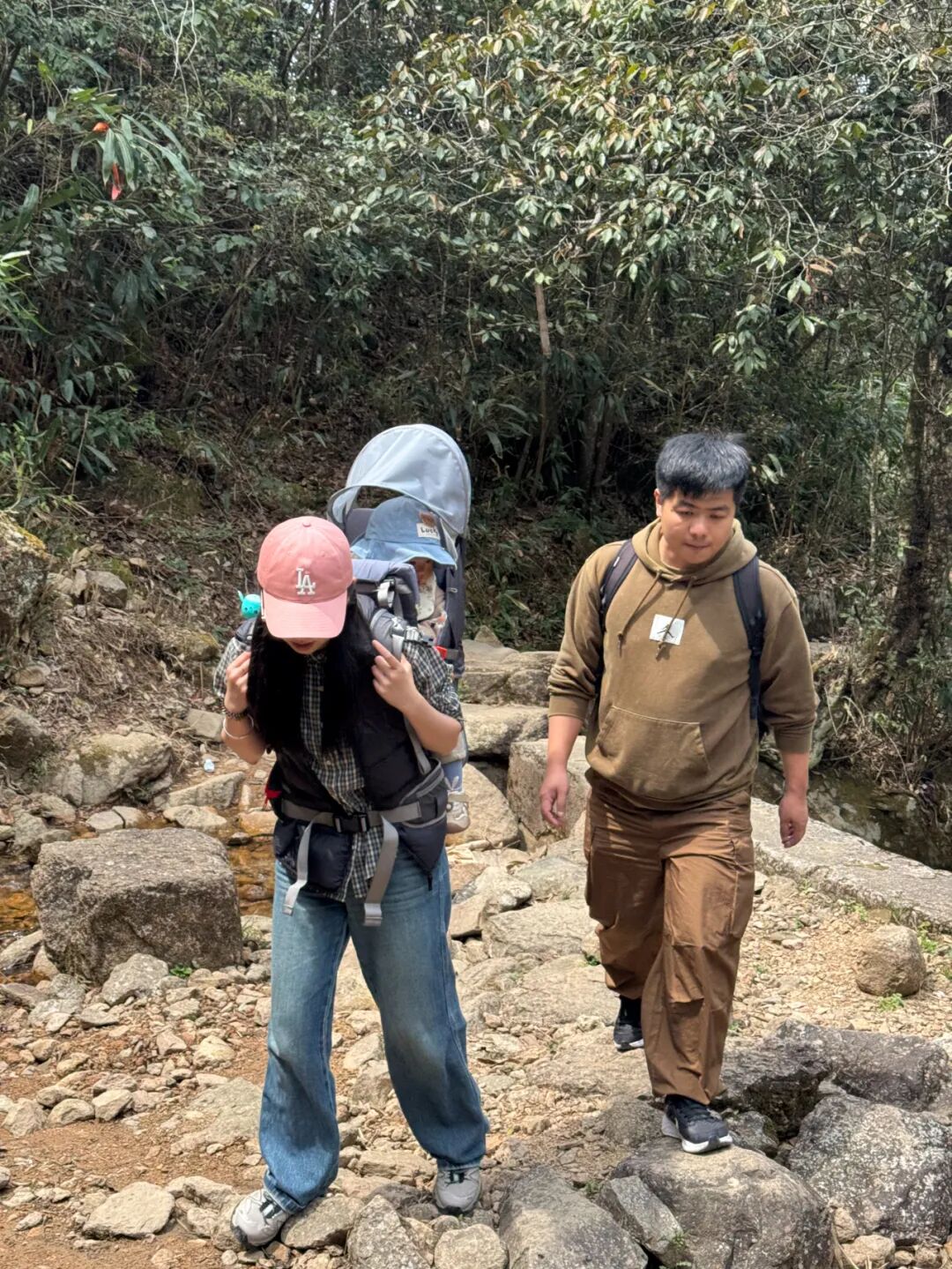 我娃十一个月的时候,我带他去挑战了常山最高峰—白菊花尖,我跟我老公和一个好朋友一起,全程我娃儿都坐在背架上看风景,中途坐腻的时候也会抱他下来一会。最终登顶成功,全靠这个背架。