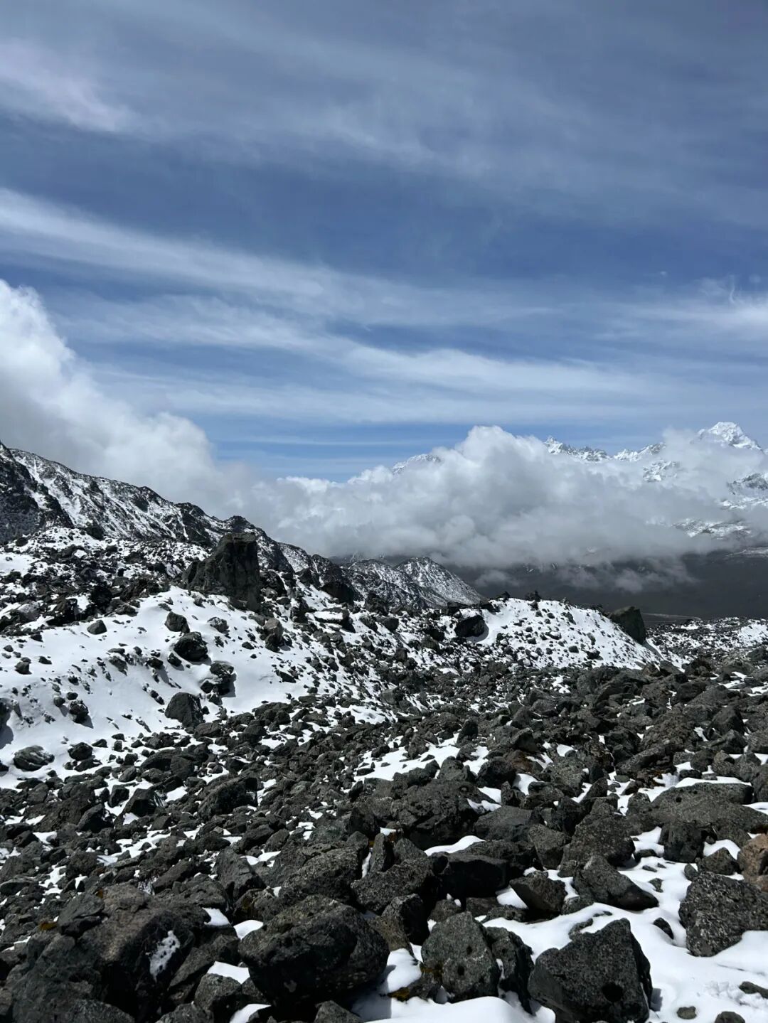 去年去川西徒步,走的是非常规路线,结果误入乱石坡迷路了,差点走不出来。靠着轨迹和经验才摸回了来时的路,本以为危险已经过去,谁知道4月的高原开始下起了雨夹雪,上一秒还晴空万里的天突然变黑,近零度的雨水混着雪,糊的人眼睛都睁不开。戴着的防水手套都开始被慢慢浸湿,艰难地拿出手机与队友沟通几分钟手指就完全僵掉,迅速降低的气温和长时间跋涉的疲惫让人崩溃,完全是靠意志力强撑着往汇合点走。雨水哗哗地从身上流下,幸亏是gtx面料足够防水,让我的保暖层始终保持干燥,要不然那天真就因为失温交代在那了。