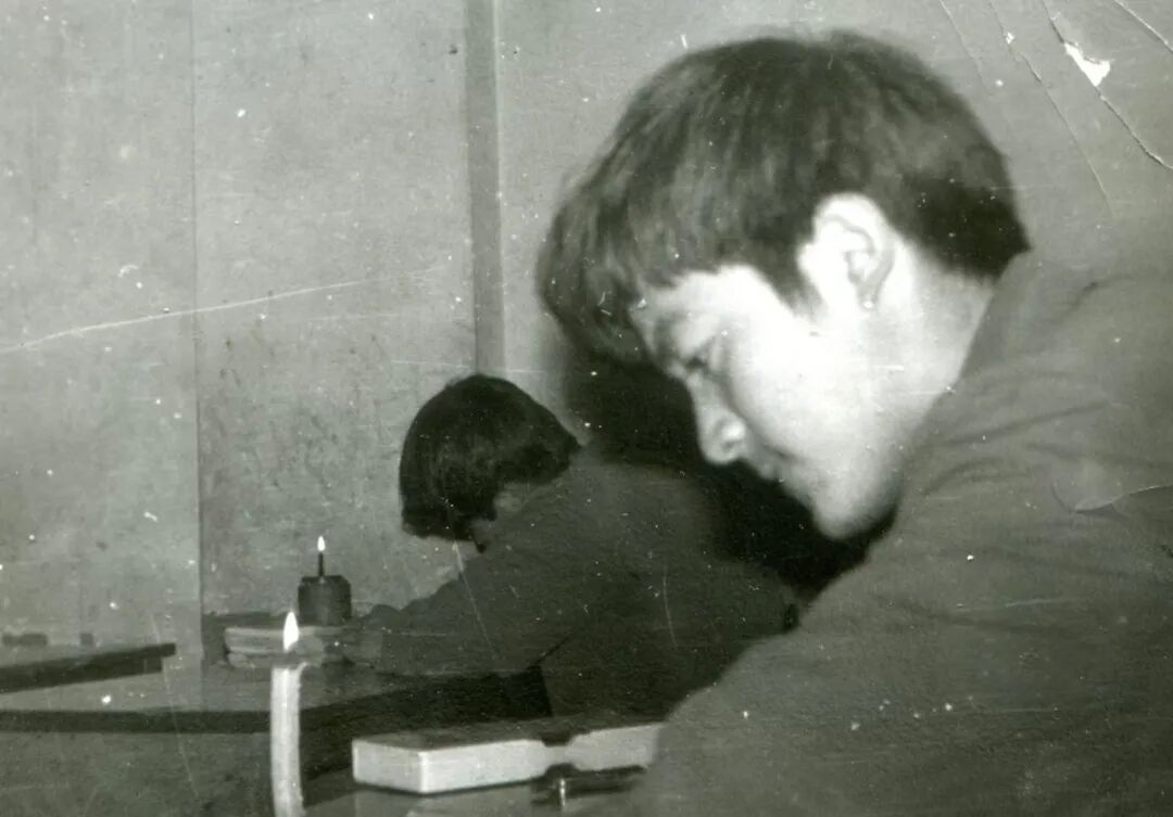 这两张照片就是我高中时候拍的,因为有些年头了,都能看到照片上的划痕。当时那个年代,考大学是唯一的出路,而那时候考大学又很难,所以大家还是很努力的,点着蜡烛在教室学习——那时候一到晚上就停电。