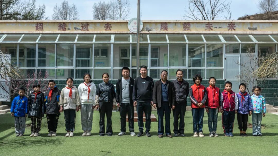 这是定西市临洮县马营沟教学点,这所学校有4个班,10个学生,5位老师。这张照片,就是全校师生合影了。