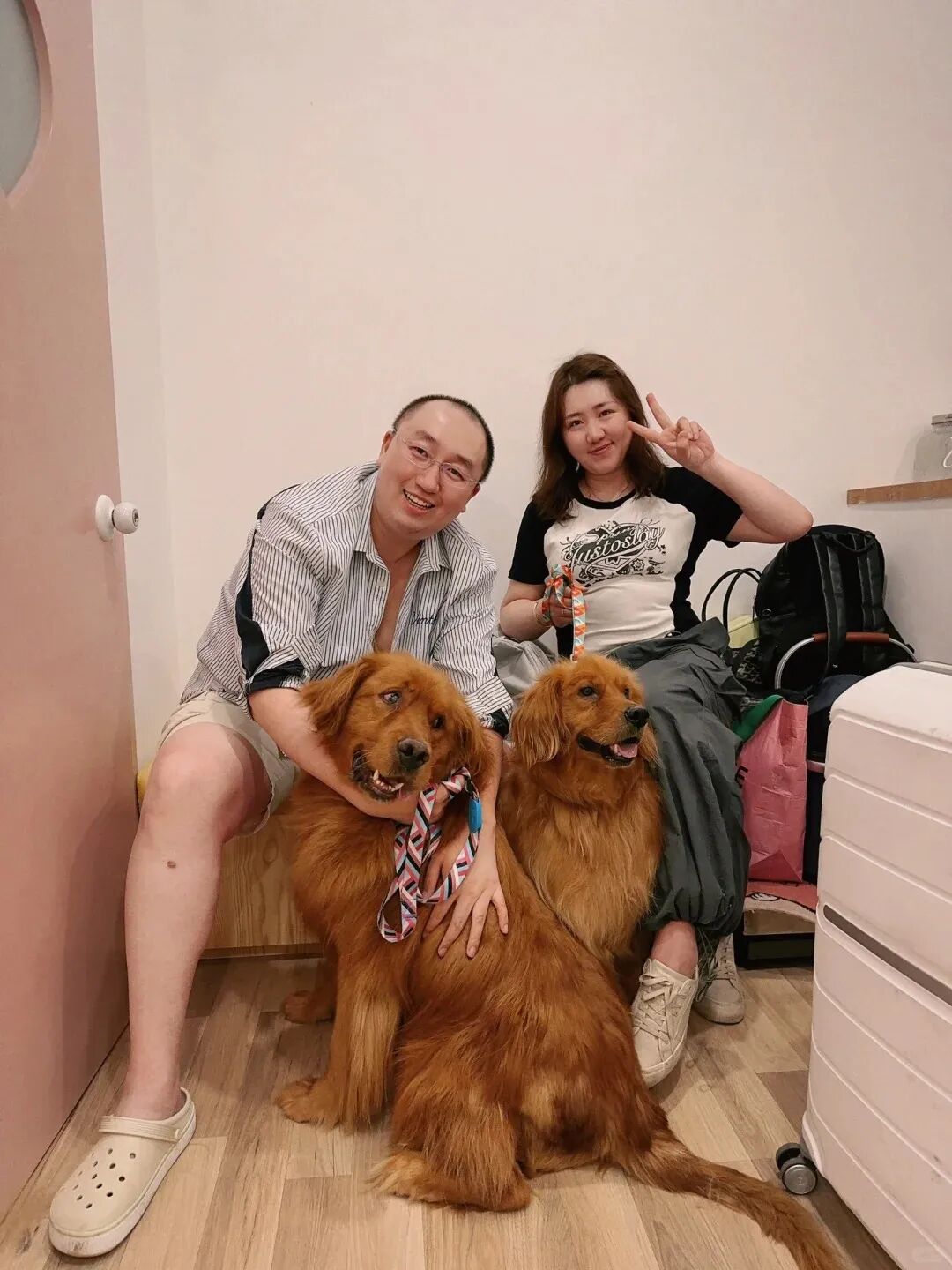 有统计数据表明,金毛平均寿命10岁半,65%的死亡原因都和肿瘤有关。有的犬舍会对狗做癌症筛查,所以我看了很多知名犬舍,打算买两只金毛,期望它们能活得时间长一些。但路飞走了几个月后,我从救助小院领回了大毛和小毛,一个被车撞碎盆骨,被好心人捡到做了手术,3年来一直辗转于救助小院;另一只6岁,眼睛基本看不见了。领养它们的原因很简单:我媳妇儿曾经想去这家救助小院做义工帮忙,所以有他们的小红书账号。偶然间发现里面有一只狗(小毛)比较像路飞,我们就去看了,到了以后发现旁边还跟着另一只金毛(大毛),它也有一部分像路飞,所以就把它俩一起领养了。