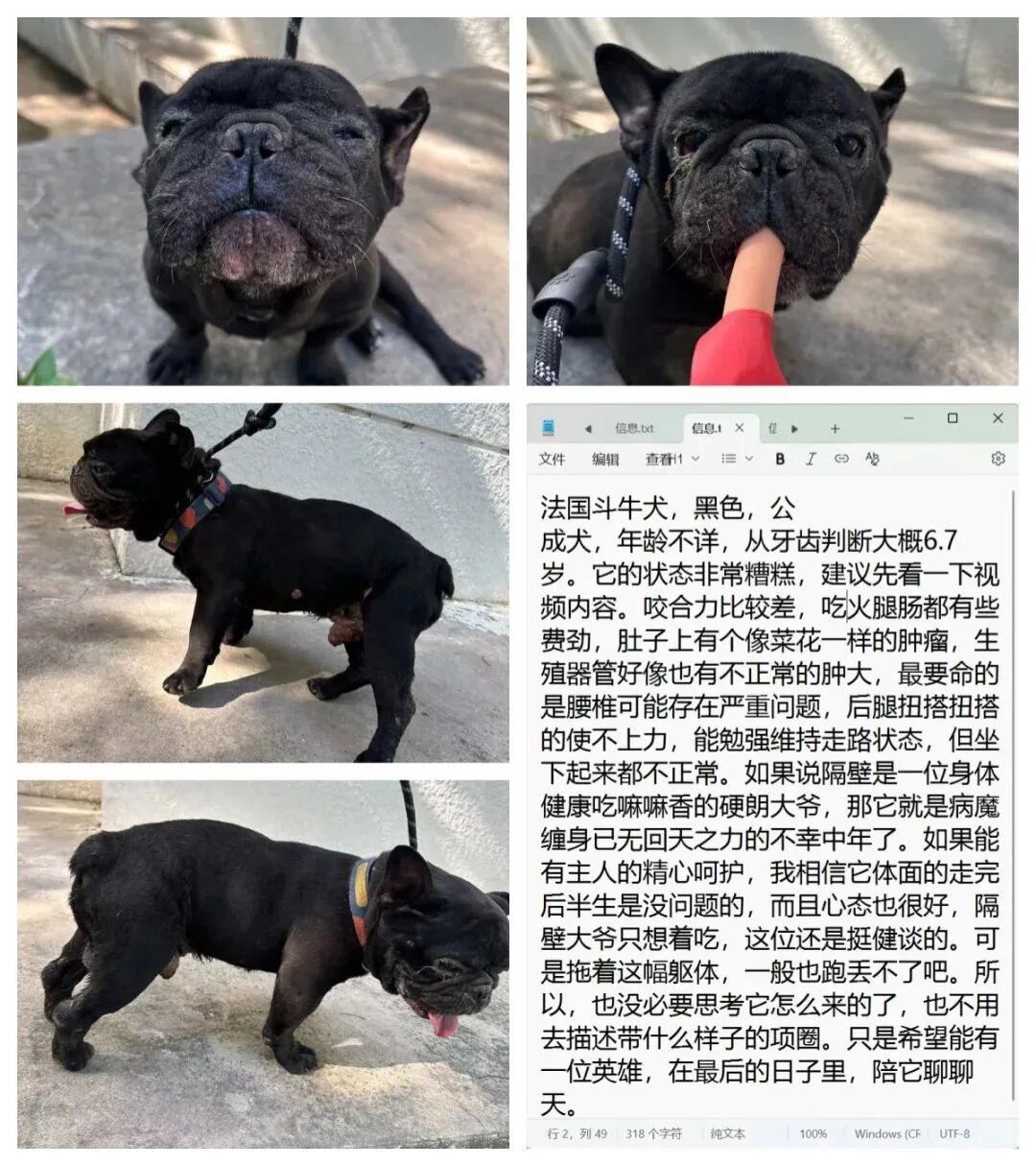 所以在系统上线以后,我第一时间就把它放上去了。很多人想众筹或者捐款,我一一拒绝了,感谢大家的好意,但我认为这不是一个好的办法,既不可持续,也没有考虑到狗后续的问题,治好了然后呢?只能去救助小院了。我希望它能真正回到家庭中。直到我后台出现了这么一条消息:「我们之前捡过一个老年流浪边牧,养在自家公司的院子里。后来因为医疗事故,麻药注射过量死了。我一直很自责,因为这个还起诉了那个医生和医院。昨天偶然看到那个照片,跟我们之前的狗好像,就想着试试能不能接回来照顾,也弥补一下心里的亏欠。」