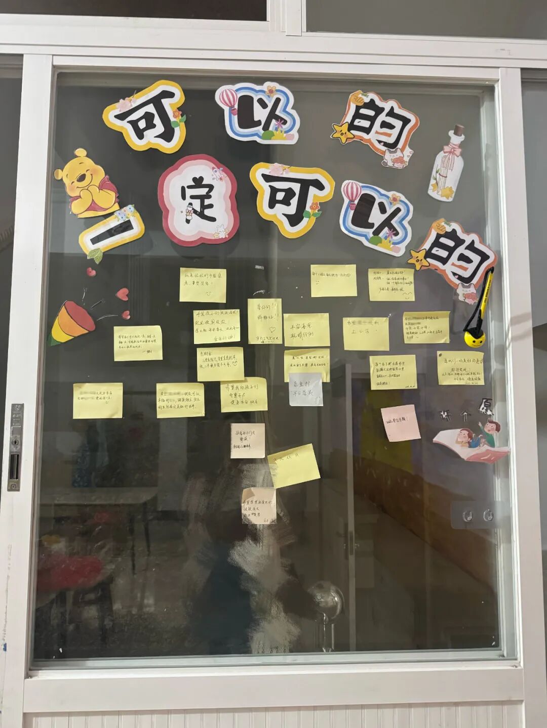 玻璃门上贴满了家长的心愿便利贴吕蓓卡 摄