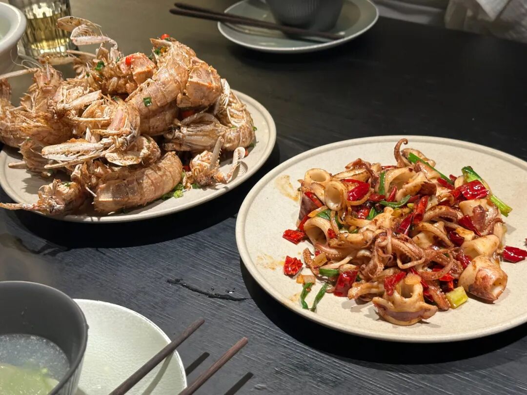 酒店的海鲜加工有点贵,但是超级好吃。鱿鱼鲜鲜甜甜,皮皮虾又大又带膏,爆炒和椒盐的口味恰到好处,不会太重口又能完美搭配食材的鲜美!咱是一东北孩子,从小就对海鲜有迷恋,小时候都是在爸妈结婚纪念日才去吃海鲜。当天捕捞的海鲜跟长途跋涉运送的味道真的不一样,全程爸妈赞不绝口!
