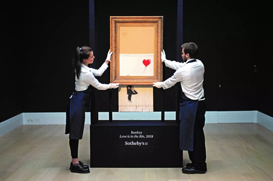 被毁掉一半的《女孩与气球》,现更名为《垃圾桶里的爱》