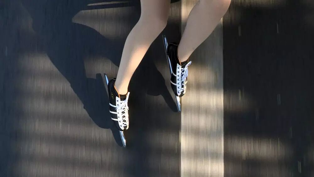 作品里的马秋莎,一直有着尖刻、叛逆的模样。在《我所有的锐气源于你的坚硬》里,她穿着冰刀鞋,坐着三轮摩托,从一条街到另一条街。刀刃刮在刺刺拉拉的水泥地上,蹦着火星流子。这条路是她童年时往返奶奶家的路程,暗示她成长的曲折和疼痛。